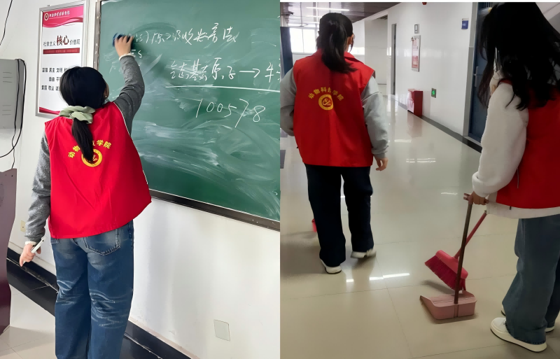 活动当天,同学们来到各自负责的区域集合,在部门负责人组织和引导下,大家有序的投入到清扫工作中。他们分工协作、配合默契,有的同学仔细地擦拭着黑板、窗台,有的同学清扫楼梯和走廊,他们用行动为师生营造出一个整洁、舒适的环境。