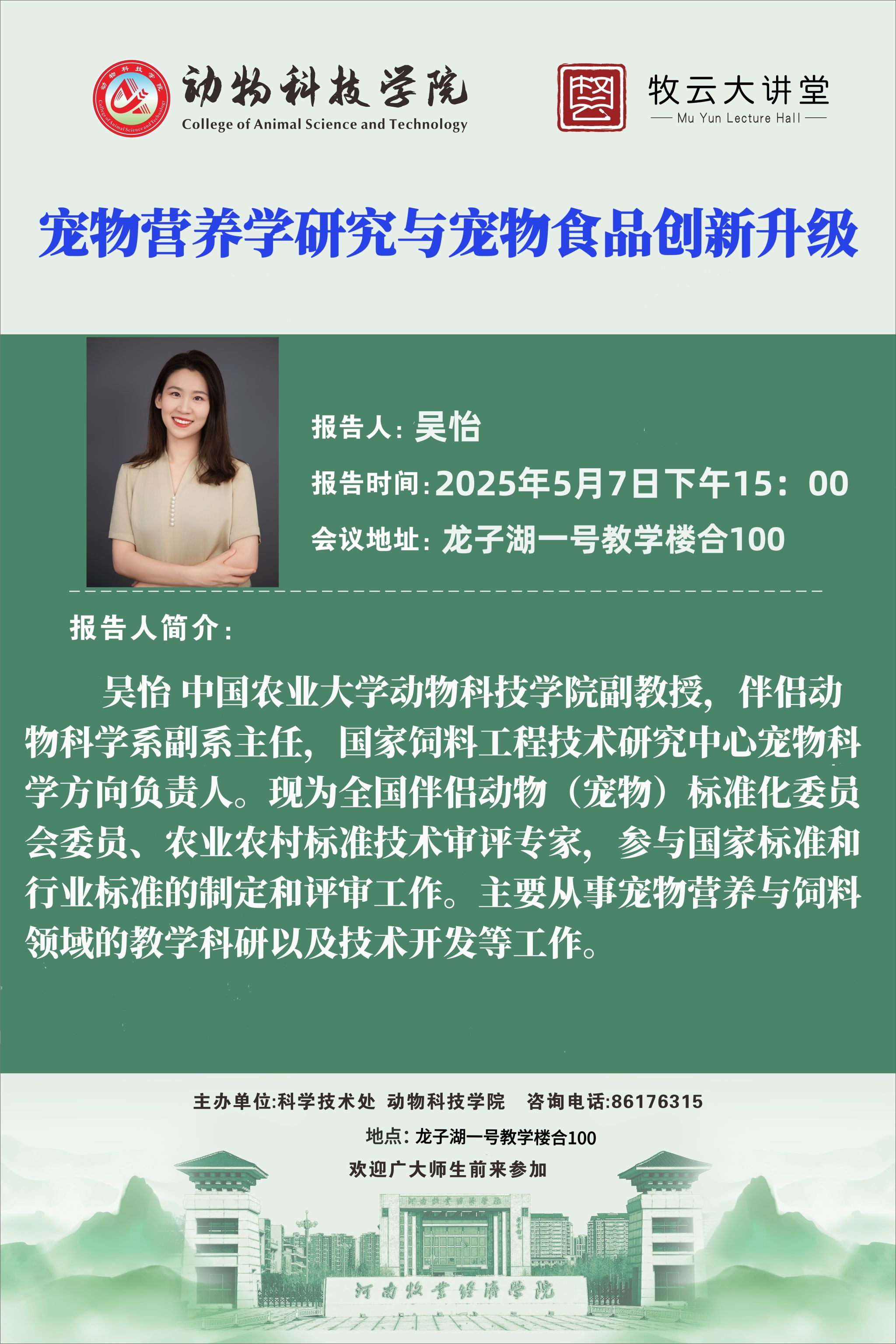 海报——“牧云大讲堂”第五十场专场报告会《宠物营养学研究与宠物食品创新升级》