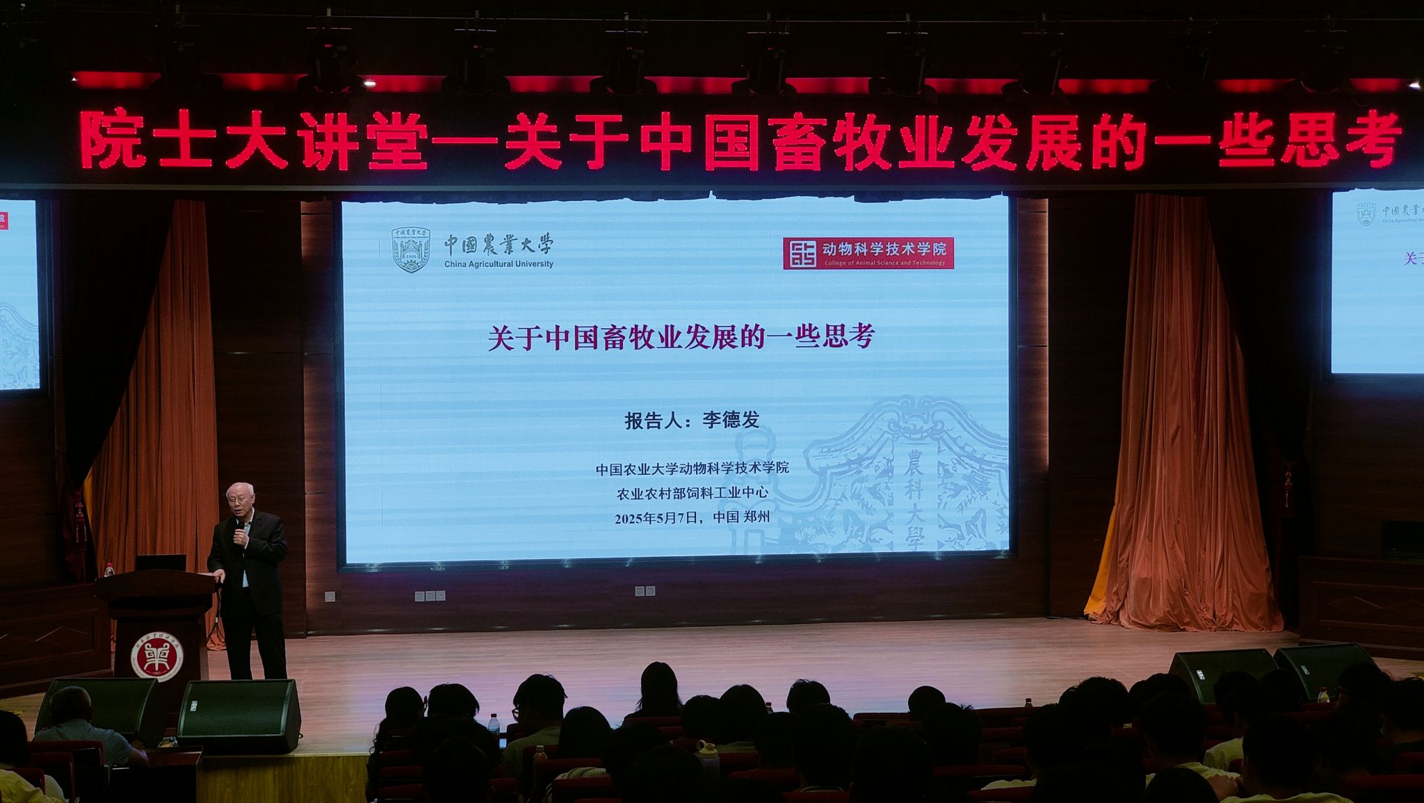 5月7日,由公司科学技术处和beats365官方网站联合主办的院士大讲堂,邀请到了中国工程院院士、中国农业大学beats365官方网站李德发教授,在龙子湖校区一号楼合100报告厅为公司师生作题为《关于中国畜牧业发展的一些思考》的学术报告。报告会由beats365官方网站副经理邓红雨(主持工作)主持。